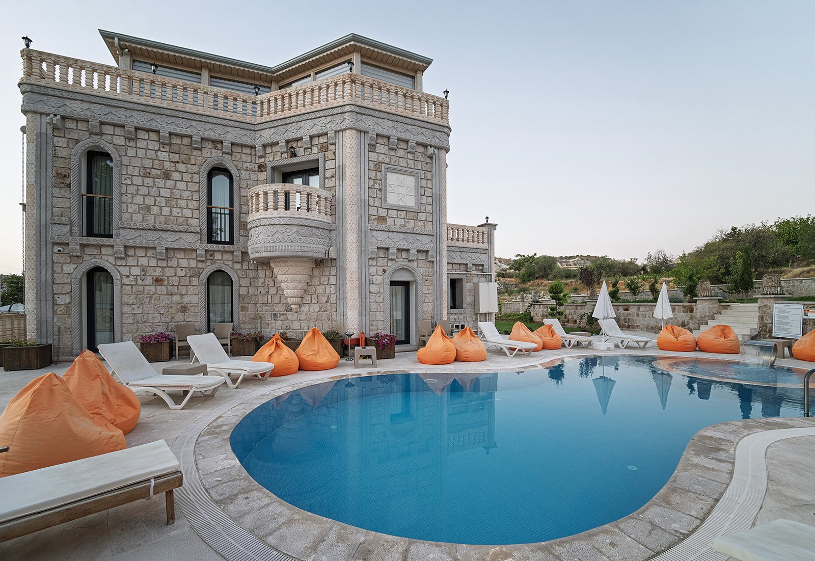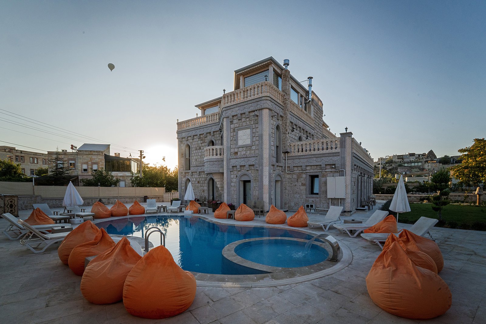 Motif Art Cappadocia's outdoor swimming pool offers a peaceful atmosphere, accompanied by fairy chimneys and natural scenery. With its quiet and tranquil setting, it's the ideal resting spot for guests seeking a refreshing break from the day's tiring days. Enjoy a swim in Cappadocia's unique natural beauty.
